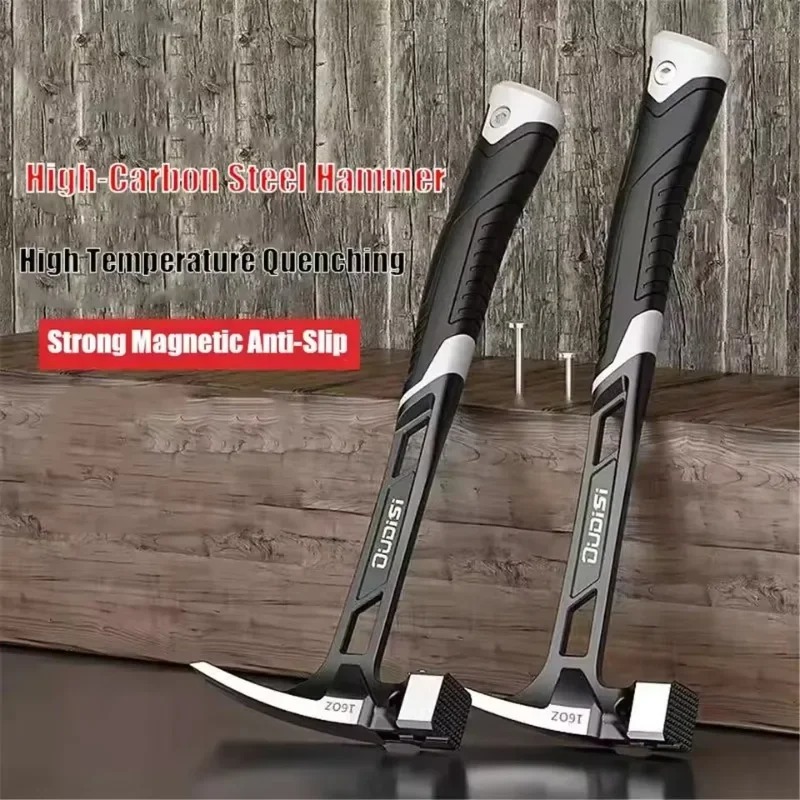 Strong Magnetic Nail Starter: Features an integrated magnetic slot on the head to securely hold nails, allowing for precise, one-handed initial strikes in difficult-to-reach areas or overhead framing.