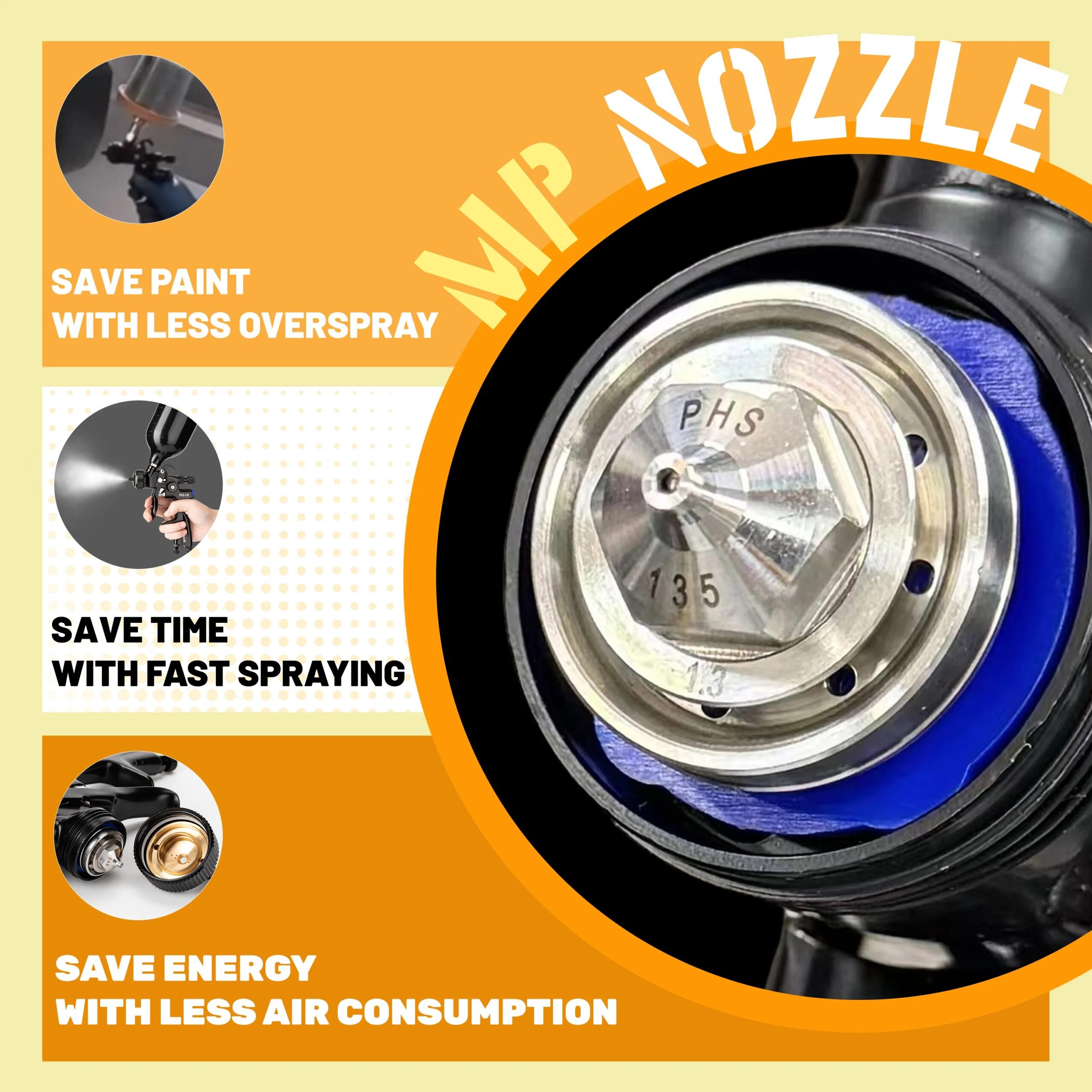 High-Efficiency Atomization: Engineered to deliver a fine, uniform mist, reducing overspray and ensuring maximum paint transfer efficiency for a perfect finish.