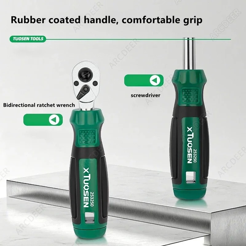 Comprehensive 38-in-1 Master Kit: This professional set is meticulously curated to handle diverse fastening needs, including:Ratchet Wrench & Screwdriver Handle: Dual-drive options for both high-torque and precision applications.10-Piece Socket Collection: Ranging from $4\text{mm}$ to $13\text{mm}$ for standard mechanical tasks.22-Piece Precision Bit Set: Includes Phillips, Slotted, Hex, Torx, Square, and U-shaped bits to cover all modern fastener types.Advanced Access Accessories: Engineered for maximum versatility in restricted areas, the kit includes:Extension Rods: Both $60\text{mm}$ and $100\text{mm}$ lengths for deep-seated fasteners.Universal Joint Rod: Provides a flexible angle for difficult-to-reach mechanical joints.Socket Connection Rod: Ensures a secure $6.3\text{mm}$ interface between tools and sockets.High-Torque Ergonomic Design: Both the ratchet and screwdriver feature high-traction, dual-material grips in signature industrial teal and black, providing a secure, comfortable hold even in high-pressure environments.Rugged Organized Storage: All components are housed in a durable, high-impact tactical carrying case with labeled slots, ensuring your tools remain organized, protected, and ready for immediate use on any job site.