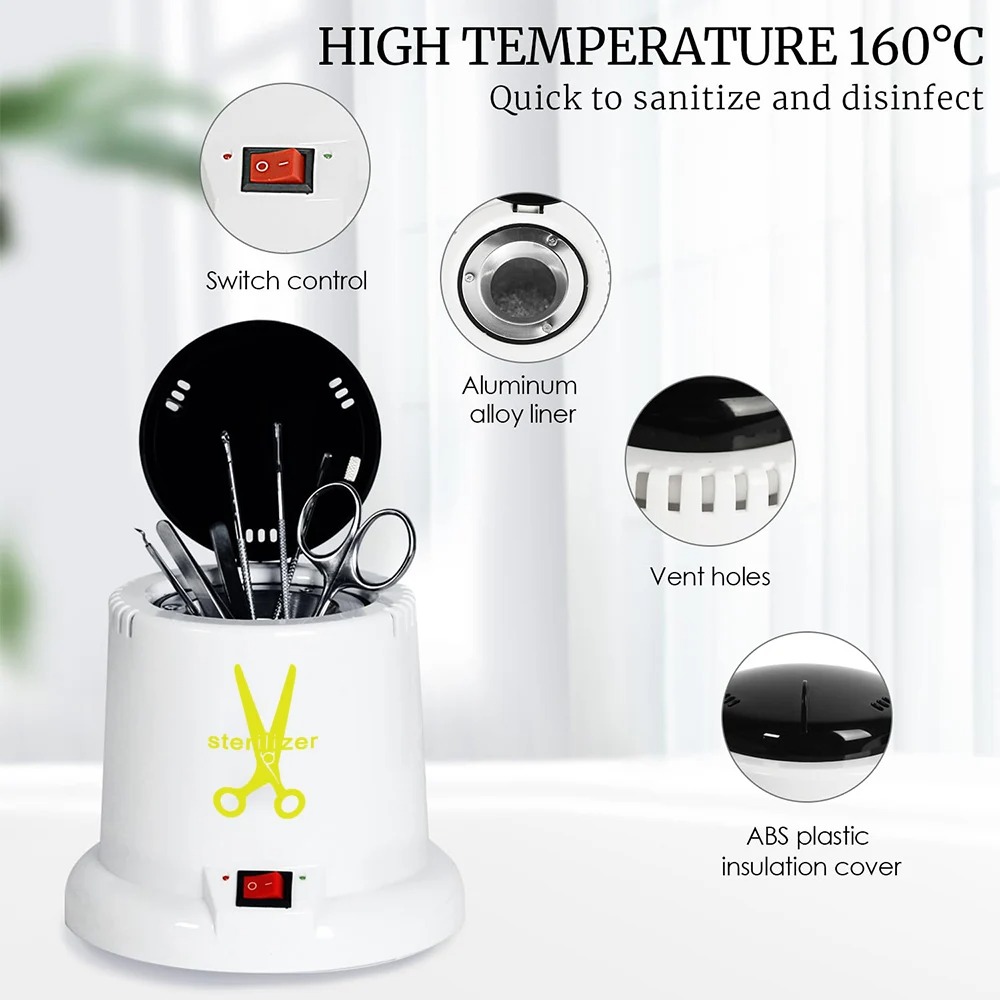 Medical-grade hygiene at your fingertips. This high-temperature sterilizer uses specialized quartz sand beads to rapidly sanitize metal tools, including nail nippers, tweezers, and hair scissors, ensuring a safe and germ-free environment for every client.